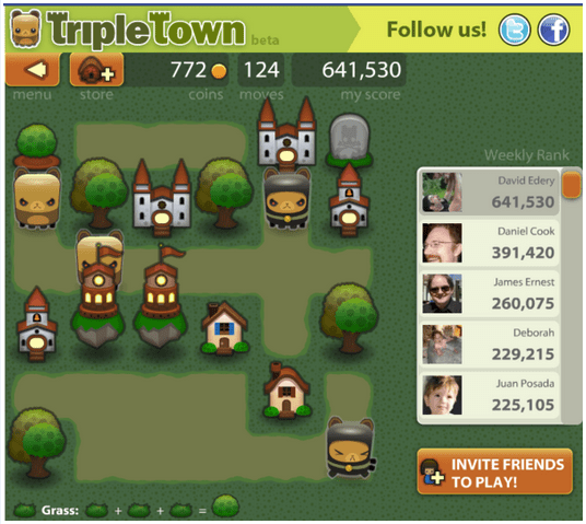 Originally for the kindle, and then for Facebook, Triple Town very quickly became my favorite match-three game in a long time. I clocked more hours on Triple Town on Facebook than any other game on the platform this year, and I play a lot of Facebook games for work and research (and some for fun, I suppose). The grid size, frequency of items, and pacing are tuned to perfection, and it’s simply one of the most rewarding puzzle games I’ve ever played. Only in Chess have I thought as many steps ahead in a turn-based game as I have in Triple Town. For about a month after Triple Town came out, it came up almost universally in every conversation I had with a game designer in NY. That about says it all.